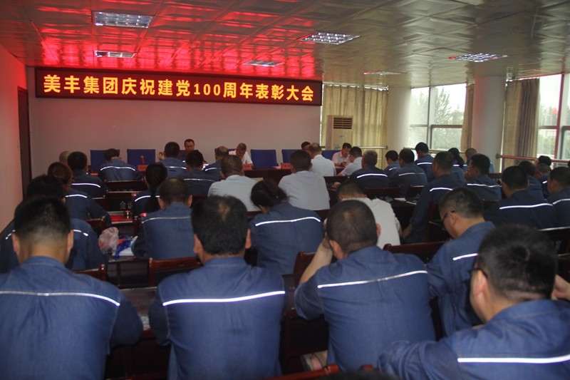 2021年6月25日下午,美豐集團在美青化工生產(chǎn)大樓二會議室召開建黨100周年慶祝暨表彰大會。公司黨委書記、總經(jīng)理任國建,黨委委員、副總經(jīng)理謝安、何琳,黨委委員、總會計師李旭東出席了會議。會議由任國建主持。